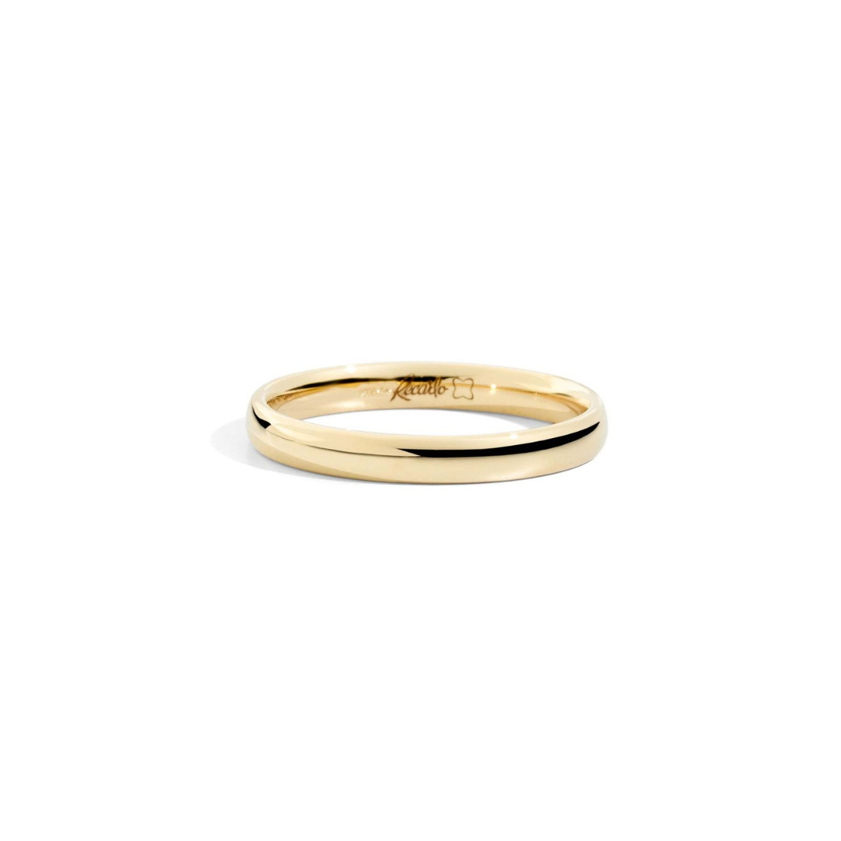 Alianza de boda clásica de Recarlo en oro amarillo 18k maciza. Diseño elegante y duradero, disponible en distintos grosores, con grabado personalizado incluido y un discreto diamante interior característico de la firma.