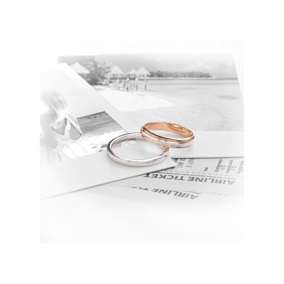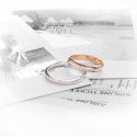 Alianza de boda bicolor en oro blanco y oro rosa 18k maciza. Diseño elegante y duradero, con grabado personalizado incluido y un discreto diamante interior.