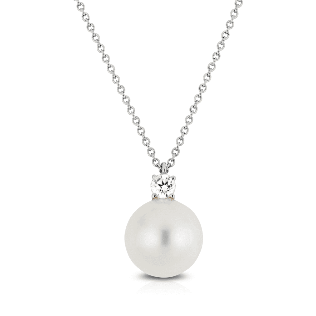 Collar colección Pearls en oro blanco de 18kts con un diamante natural y una perla blanca australiana esférica.