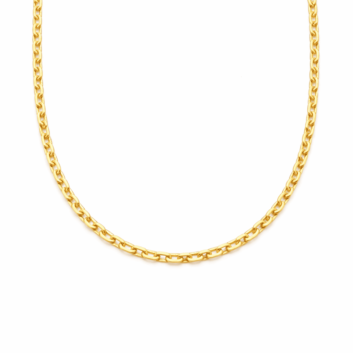 Cadena de oro amarillo macizo 18kts con diseño de eslabones entrelazados, elegante y atemporal.
