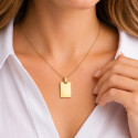 Placa en oro amarillo de 18kts con acabado elegante, ideal para grabar y personalizar. Una joya atemporal pensada para crear un recuerdo único.
