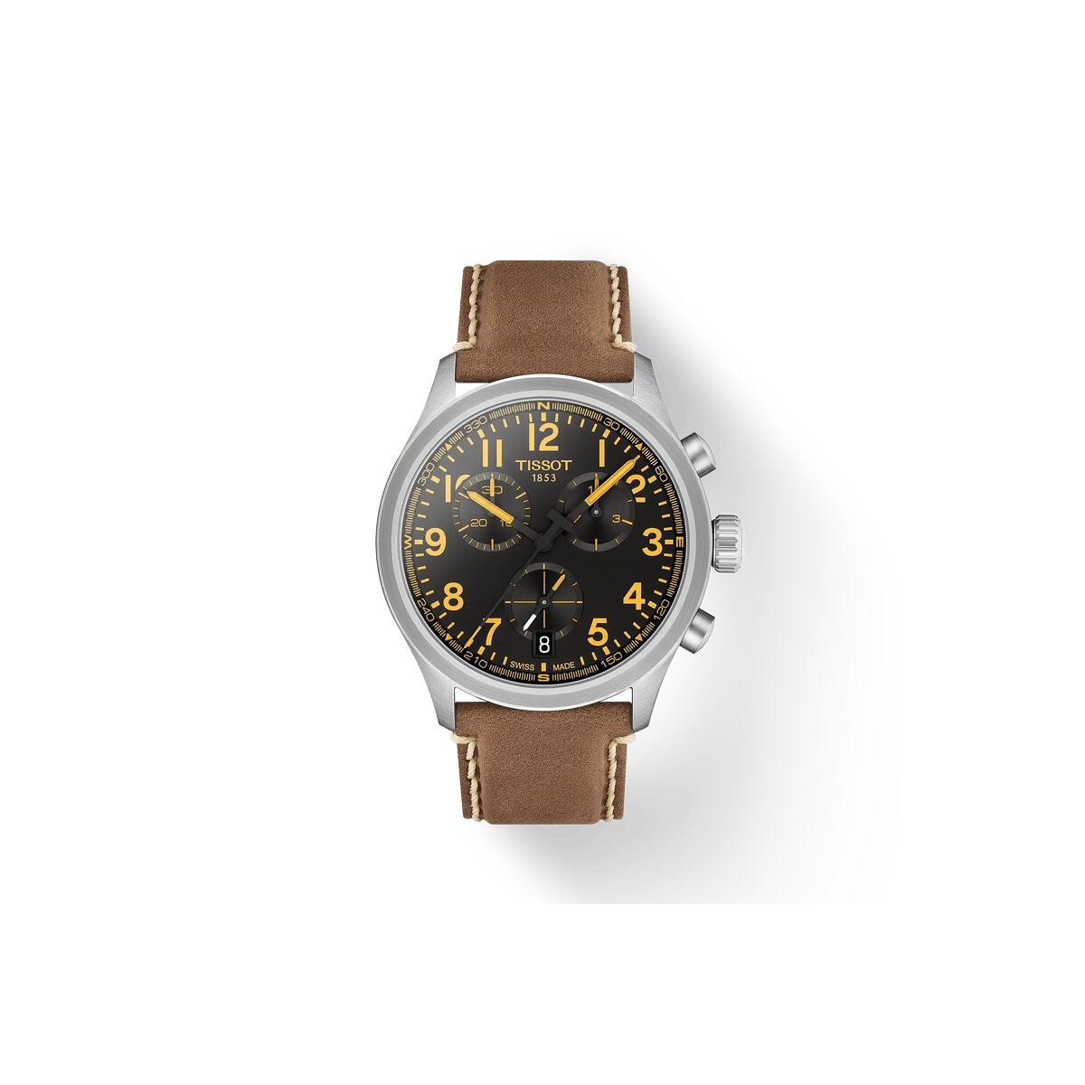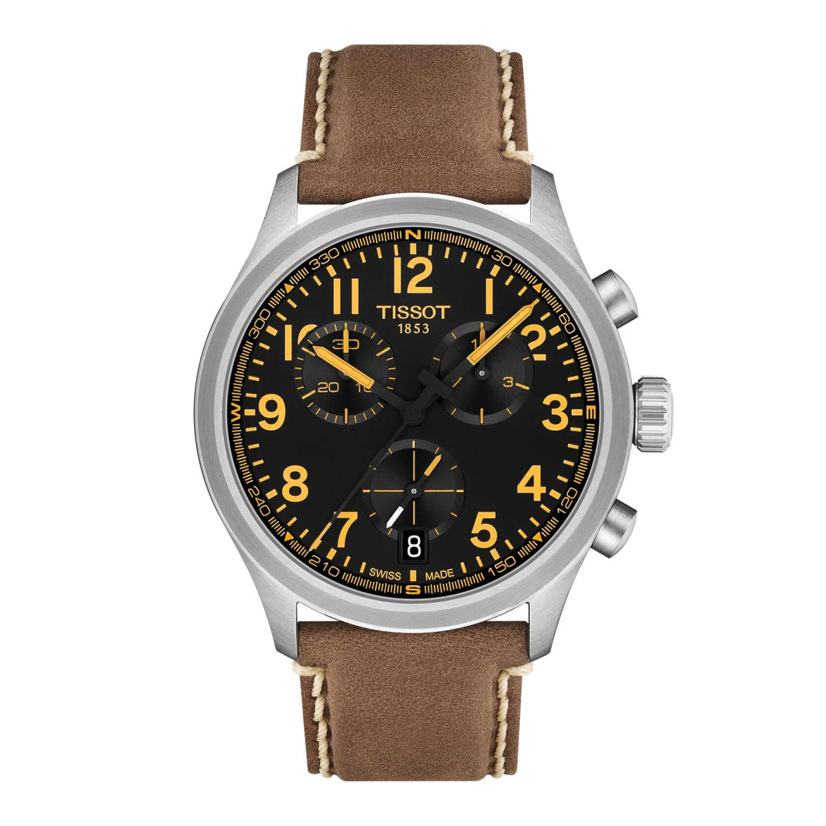 El Tissot Chrono L de 42 mm, inspirado en la colección Chrono XL, combina diseño deportivo y elegancia. Equipado con movimiento de cuarzo suizo y cronógrafo de alta precisión, ofrece resistencia al agua hasta 100 metros y gran legibilidad con Super-LumiNova®. Su esfera negra con detalles amarillos y correa de cuero aportan un estilo dinámico.