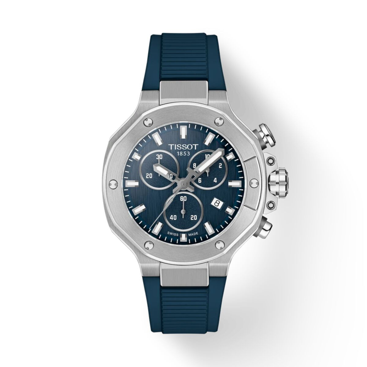 Reloj Tissot inspirado en el mundo del motociclismo, que combina dinamismo y diseño deportivo. Fabricado en acero inoxidable con movimiento cronógrafo de cuarzo y resistencia al agua, presenta bisel blanco en contraste inspirado en el disco de freno y su pinza. Su esfera azul y correa de caucho a juego completan un modelo pensado para los amantes de los deportes de motor.