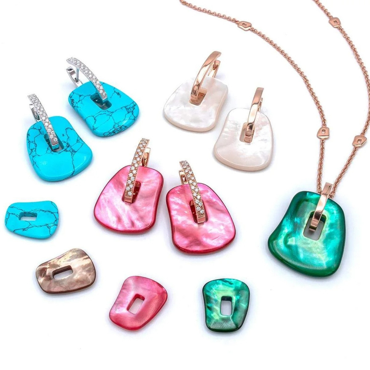 La colección icónica de Mattioli, inspirada en el arte abstracto, une color, creatividad y versatilidad. Cada pieza está realizada en oro de 18k en Italia e incluye tres elementos intercambiables, fáciles de cambiar con un gesto, para estrenar un estilo diferente cada día.