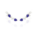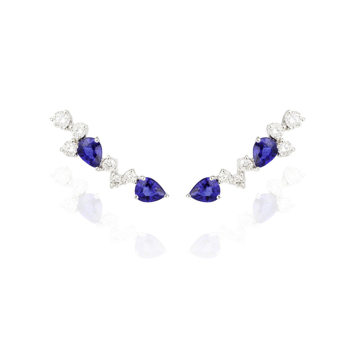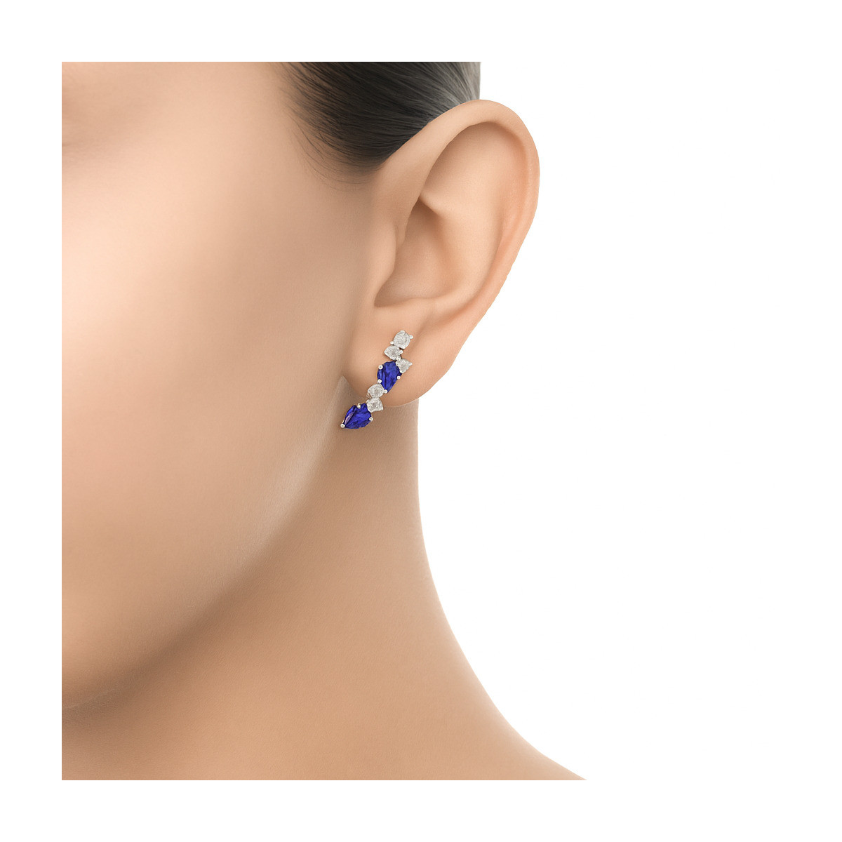Par de pendientes trepadores colección Grace Color en oro blanco de 18kts acompañados de diamantes naturales y zafiros azules.