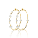 Par de pendientes colección Rugiada Pietre en oro amarillo de 18kts, 8 diamantes naturales talla redonda brillante y 12 perlas.