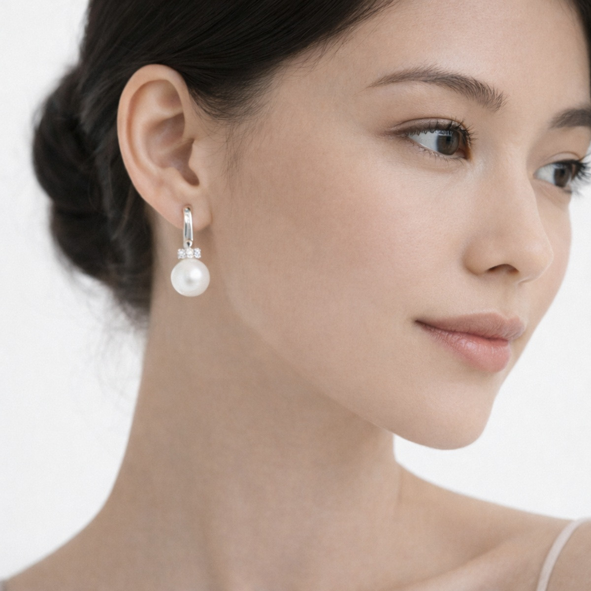 Pendientes Oro Blanco Perlas Diamantes IrantzuLine