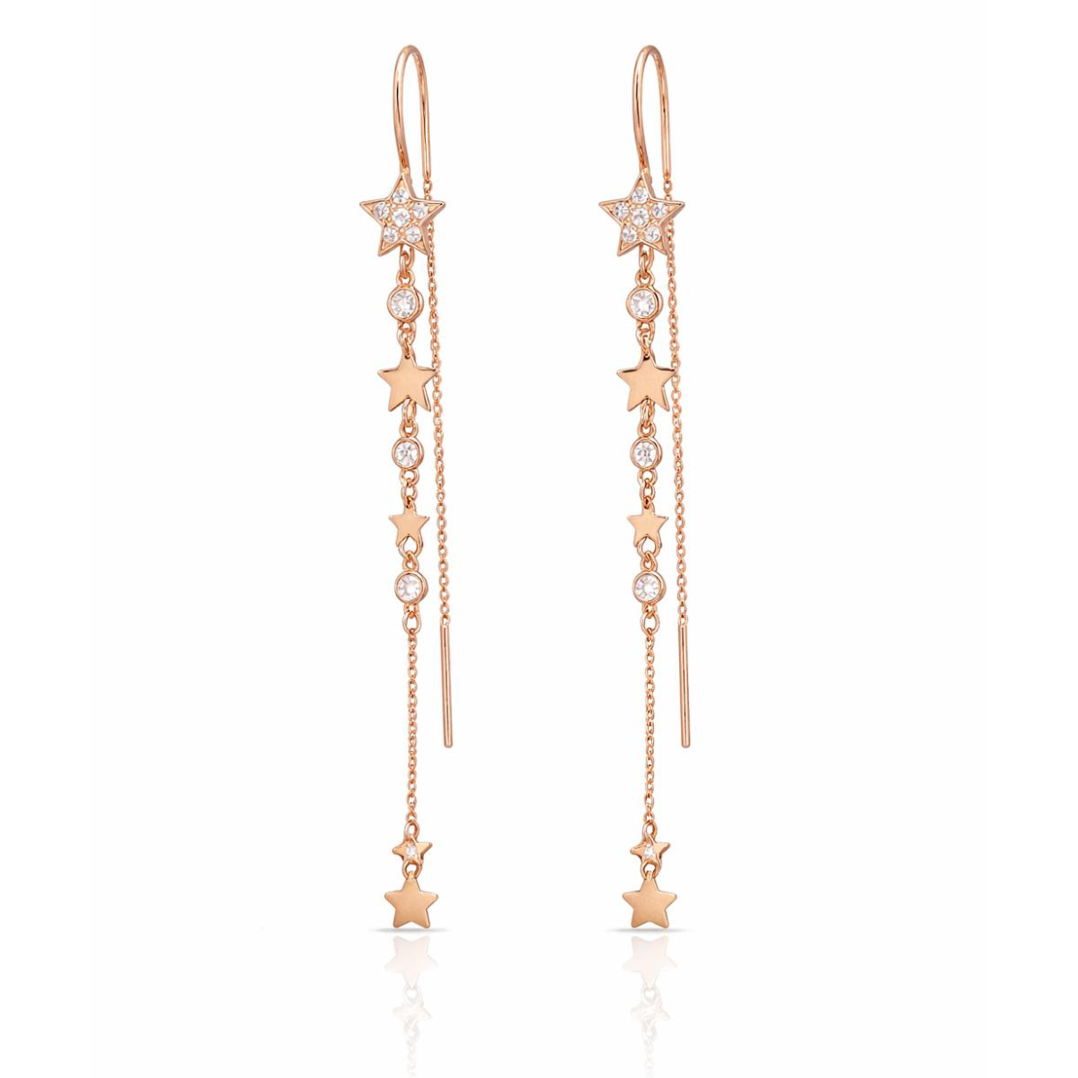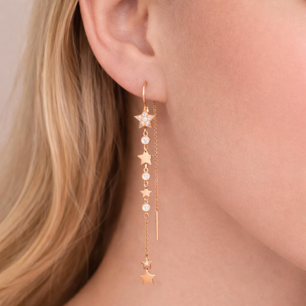 Par de pendientes largos colección Milady en oro rosa 18kt con diamantes naturales, diseñados para aportar luz, elegancia y movimiento.