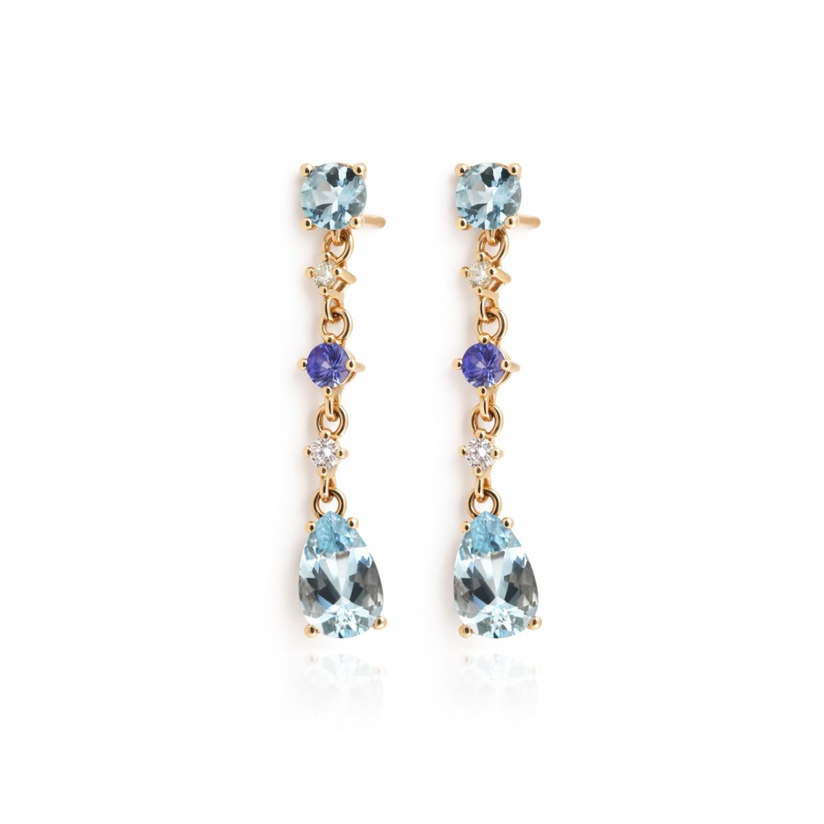 Pendientes Rainbow Aguamarina Oro Rosa Zafiro Azul Irantzuline
