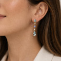 Par Pendientes de Oro Rosa de 1ª Ley de 18 quilates exclusivo de Joyería Irantzu. Pendientes con Diamantes naturales talla brillante, gemas Aguamarina y Zafiros Azules.