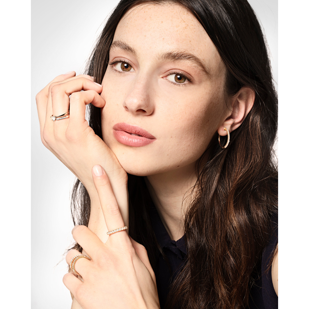 "El perfecto engaste de los diamantes en la colección Anniversary otorga un brillo espectacular que irradia a través de los corazones en la base de la joya"